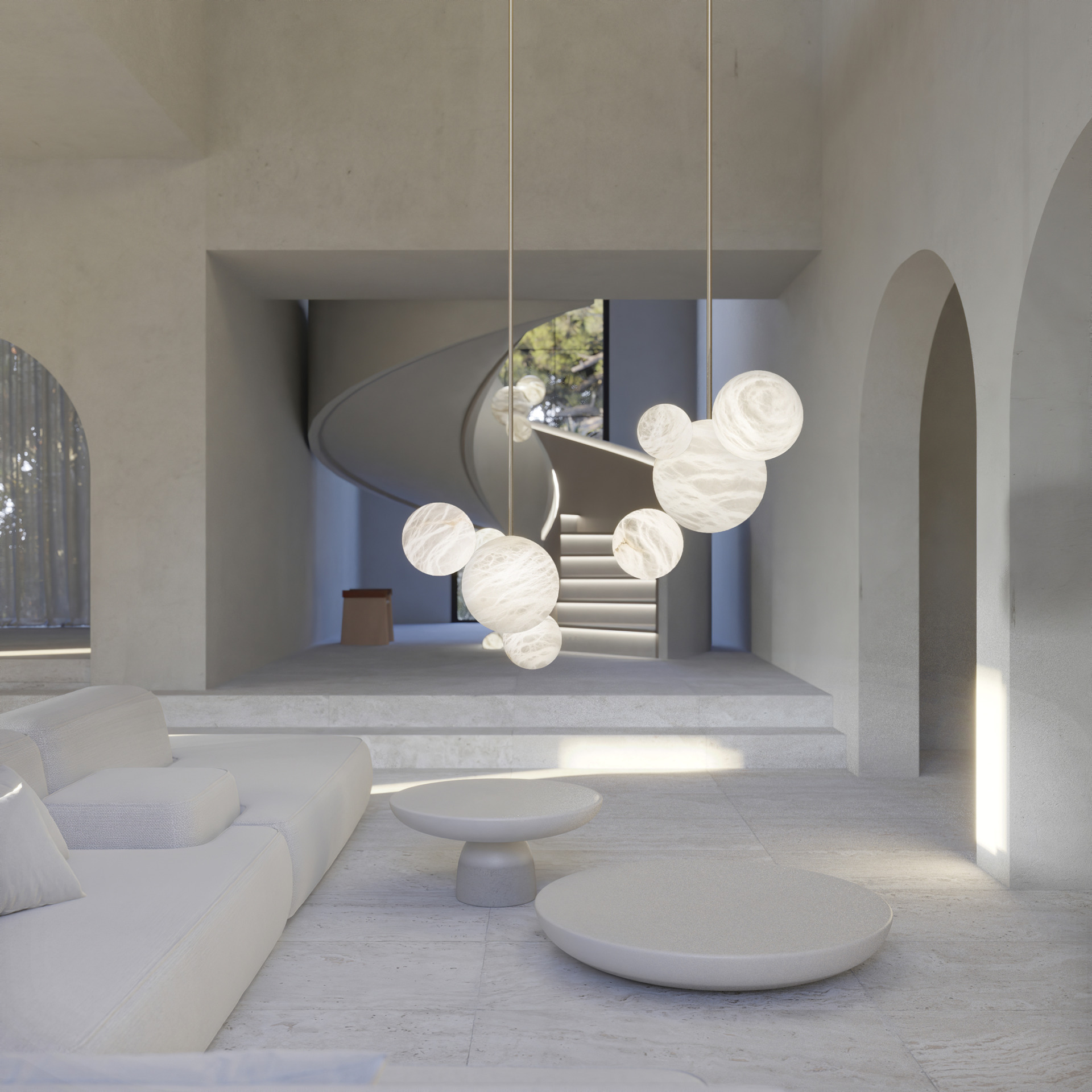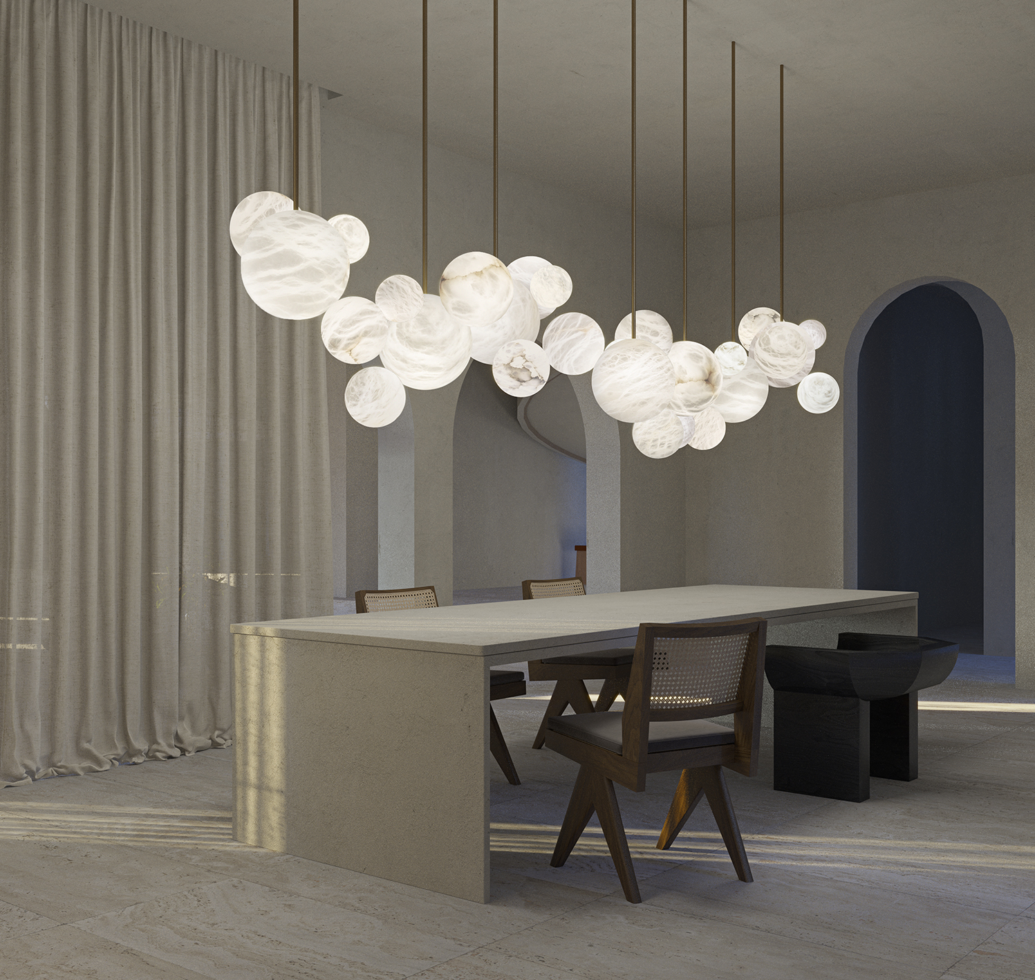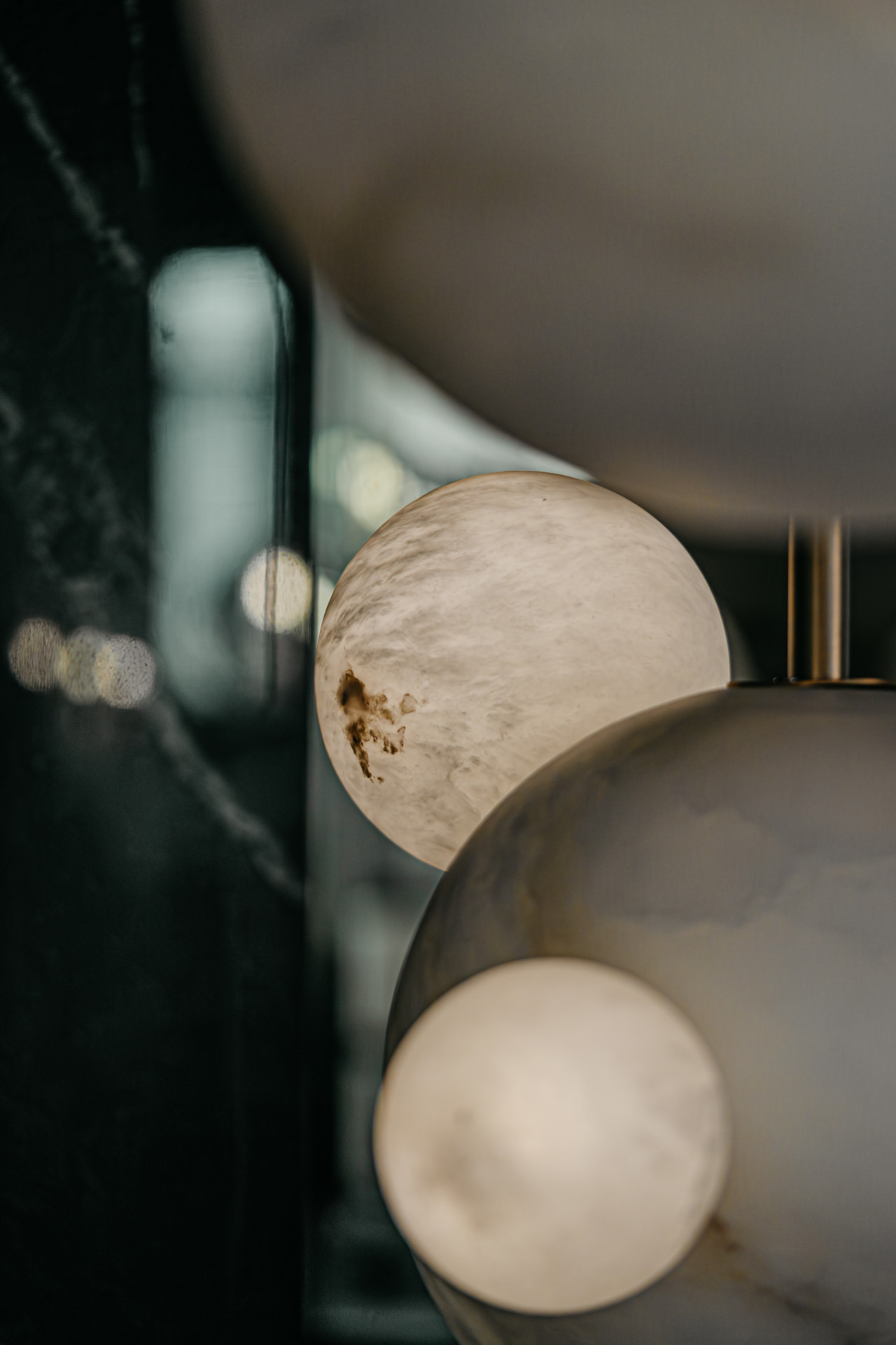 Het licht wordt in twee richtingen verspreid, omhoog en omlaag, waardoor de translucente schoonheid van het albast wordt benadrukt en een warme, verfijnde sfeer ontstaat. Het minimalistische en sculpturale ontwerp maakt Up & Downtot een elegant middelpunt in iedere ruimte.